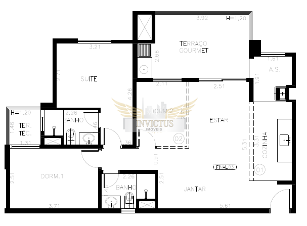 87m² de área útil, sendo distribuídos em: